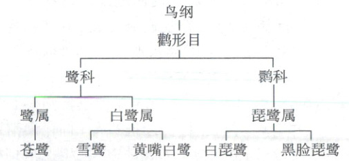 22.下图是小华查阅“鹭”的资料后整理出的分类图,其中与黄嘴白鹭亲缘关系最近的是(