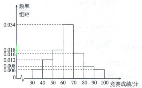 掌握情况,随机抽取100名学生的竞赛成绩,并以