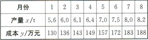 例 3 - 2 (2025·河南郑州月考)某工厂 1~8 月份某种产品的产量 $ x $ 与成本 $ y $ 的统计数据如下表: