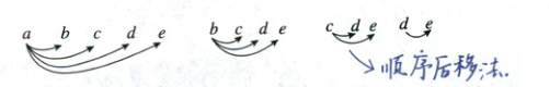 1. 由于组合与顺序无关,故利用“顺序后移法”时,箭头向后逐步推进,且写出一个组合后,不可再写出交换位置后的组合,如写出$ab$后,不可再写出$ba$,因为它们是同一组合。