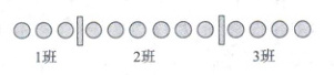(1)小问的方法,可得有分配方案C₆² = 15(种)。下图是其中一种分配方案,表示分给1班、2班、3班的名额分别是3 + 1 = 4(个),2 + 1 = 3(个),2 + 1 = 3(个)。