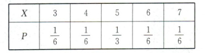 $P(X=3)=\frac{1}{C_4^26}=\frac{1}{6}$,$P(X=4)=\frac{1}{C_4^26}=\frac{1}{6}$,$P(X=5)=\frac{2}{C_4^26}=\frac{1}{3}$,$P(X=6)=\frac{1}{C_4^26}=\frac{1}{6}$,$P(X=7)=\frac{1}{C_4^26}=\frac{1}{6}$,