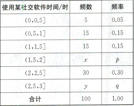 10. (2025·山东日照模拟)随机对使用某社交软件的 100 人进行统计,得到如下数据统计表,每天使用某社交软件时间在两小时以上的人被定义为“某社交软件依赖”,不超过两小时的人被定义为“非某社交软件依赖”,已知“非某社交软件依赖”与“某社交软件依赖”人数比恰为$3:2$.