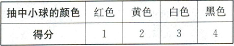7. (2025·河南郑州模拟)一个不透明的盒子中装有红色、黄色、白色、黑色小球各 1 个,这些小球除颜色外完全相同.现从盒子中随机抽取若干个小球,抽中的小球的颜色对应的得分如下表.