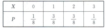 $P(X=2)=\frac{C_3^2×3×3×3}{6^3}=\frac{3}{8}$,$P(X=3)=\frac{3^3}{6^3}=\frac{1}{8}$.