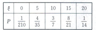 $E(\xi)=0×\frac{1}{210}+5×\frac{4}{35}+10×\frac{3}{7}+15×\frac{8}{21}+20×\frac{1}{14}=12$.