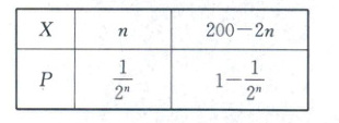 则$E(X)=\frac{n}{2^{n}}+(200 - 2n)×(1 - \frac{1}{2^{n}})=\frac{3n - 200}{2^{n}}+200$.