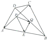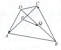 10. 如图,已知点$P$,$Q$分别是四边形$ABCD$的对角线$AC$与$BD$的中点,若$\overrightarrow{BC}=\boldsymbol{a}$,$\overrightarrow{DA}=\boldsymbol{b}$,且向量$\boldsymbol{a}$,$\boldsymbol{b}$不共线,则向量$\overrightarrow{PQ}=$