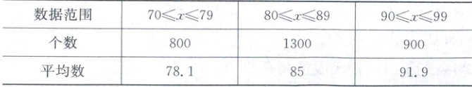 5. B 这 3000 个数据的平均数为$\frac{1}{3000} × (78.1 × 800+85 ×![img alt=5(图片的具体编号或者所属题目的题号)] 1300+91.9 × 900)=85.23$,用样本平均数估计总体平均数,可知这 4 万个数据的平均数约为 85.23.