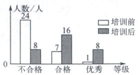 (1)培训前不合格率为$\frac{24}{32}$=$\frac{75}{100}$=75%,培训后不合格率为$\frac{8}{32}$=$\frac{25}{100}$=25%.