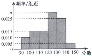 9. 某校某年级为了测试该年级 1000 名学生的数学水平,组织了一次数学测试,将这 1000 名学生的成绩分成了六组,分别为 $[90,100),[100,110),[110,120),[120,130),[130,140),[140,150]$,并整理得到如图所示的频率分布直方图,则下列结论正确的是(