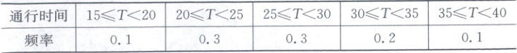 11. 某市开小车上斑的唐先生统计了过去一年每一工作日的上班通行时间,并进行初步处理,得到频率分布表如下(T 表示通行时间,单位为分钟):