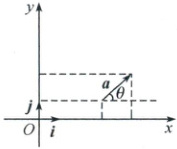 2. 如图,分别取与$ x $轴、$ y $轴正方向相同的两个单位向量$ \{i,j\} $作为基底,若$ |a|=\sqrt{2} $,$ \theta =45^{\circ} $,则向量$ a $的坐标为(