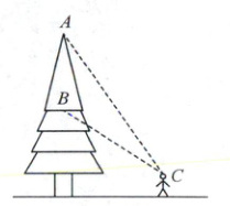 11. 如图,已知树顶 $ A $ 离地面 $ \frac{21}{2} $ m,树上另一点 $ B $ 离地面 $ \frac{11}{2} $ m,某人在离地面 $ \frac{3}{2} $ m 的 $ C $ 处看此树,则该人看 $ A $, $ B $ 两点的视角最大时,离此树的距离为