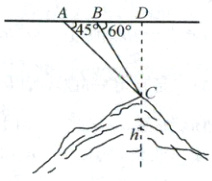 3. A 如图,设第一次探测点为$A$,第二次探测点为$B$,山顶为点$C$,山高为$h$,过$C$作$CD\perp AB$于$D$.由题意可得$AB = 800×10 = 8000(m)$,又$\tan45^{\circ}=\frac{CD}{AD}$,则$CD = AD = 8000 + BD$,因为$\tan60^{\circ}=\frac{CD}{BD}$,所以$\frac{8000 + BD}{BD}=\sqrt{3}$,解得$BD=\frac{8000}{\sqrt{3}-1}$,所以$CD=\frac{8000\sqrt{3}}{\sqrt{3}-1}$,故$h = 20000-\frac{8000\sqrt{3}}{\sqrt{3}-1}=20000 - 4000×(3 + \sqrt{3})\approx1072(m)$.
