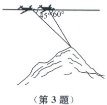 3. 一架高空侦察飞机以 $800\ m/s$ 的速度在海拔 $20000\ m$ 的高空直线飞行,飞机的航线和某个山顶在同一铅垂平面内,飞机第一次探测该山顶的俯角为 $45^{\circ}$,经过 $10\ s$ 后飞机第二次探测该山顶的俯角为 $60^{\circ}$,则该山顶的海拔高度约为(