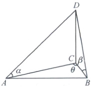 在$\triangle ABD$中,由正弦定理求$AD$,则佛像的高$CD = h + AD\sin\alpha$,故C正确;对于D,如下图: