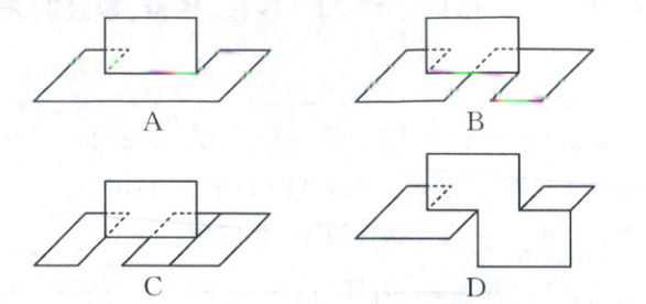 9.ABD如图,选项A,沿着竖线LG和NI剪开,沿中间线GI上翻得到。选项B,沿着竖线DI和CH剪开,LG和MH剪开,沿中间线HI和GH上翻得到。选项C,四边形LGHM和四边形BCHG都被剪了,四边形MHIN和四边形HIDC位置冲突,所以不可能得到。选项D,沿着竖线LG和NI剪开,沿中间线GI上翻,再沿着竖线CH线剪开,沿中间线HJ下翻得到。