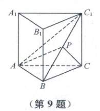 9. 如图,在直三棱柱 $\triangle ABC - A_1B_1C_1$ 中,$AB = 2$,$BC = 3$,$CC_1 = 4$,且 $AB \perp BC$,$P$ 为 $BC_1$ 的中点,则(