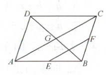 13. 如图所示,在平行四边形$ABCD$中,$E$,$F$分别为边$AB$和$BC$的中点,$G$为$AC$与$BD$的交点.