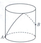 8. 如图,底面半径为1,高为2的圆柱简,在A点有一只蚂蚁,现在这只蚂蚁要围绕圆柱简表面,由A点经过圆柱简的上底面爬到内壁(圆柱简的厚度忽略不计)上的B点,其中B为高的中点,则蚂蚁爬行的距离可能为(