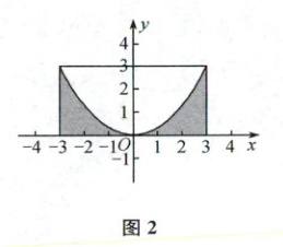 (2)如图2,由抛物线$y=\frac {1}{3}x^{2}(-3≤x≤3)$跟线段$y=3(-3≤x≤3)$围成一个几何形,将该几何形绕y轴旋转得到一个抛物线旋转体,请运用祖暅原理求该旋转体的体积.