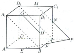 11. ①③⑤ 由 G,H,M,N 分别是棱 A₁B₁,BB₁,C₁D₁,CC₁的中点,可知 GH // A₁B₁,MN // D₁C₁,又 A₁B₁ // D₁C₁,故 GH // MN,即①正确。因为 EF ∩ 平面 ABB₁A₁ = E,GH ⊂ 平面 ABB₁A₁,E ∉ GH,所以 GH 和 EF 异面,即③正确。延长 MN 交直线 DC 于点 P,故 CP = D₁M,CP // D₁M,则 EB = CP,EB // CP,则△EFB ≌ △PFC,故点 P 在 EF 的延长线上,即 EF 与 MN 相交,即⑤正确。