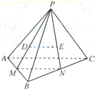 10. $\frac{1}{3}a$ 如图,因为 D,E 分别是△PAB,△PBC 的重心,连接 PD,PE,并延长分别交 AB,BC 于点 M,N,所以 M,N 分别为 AB,BC 的中点,所以 DE // MN 且 DE = $\frac{2}{3}$MN,MN // AC 且 MN = $\frac{1}{2}$AC,则 DE // AC 且 DE = $\frac{1}{3}$AC,所以 DE = $\frac{1}{3}a$。