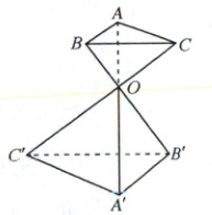 12. $\frac{4}{9}$ 因为 AA′与 BB′相交于点 O,所以 AA′与 BB′共面,在△ABO 和△A′B′O 中,可得∠AOB = ∠A′OB′,又因为 $\frac{AO}{OA'} = \frac{BO}{OB'}$,所以△ABO ∼ △A′B′O,所以 $\frac{AB}{A'B'} = \frac{2}{3}$,∠BAO = ∠B′A′O,所以 AB // A′B′,同理 AC // A′C′,BC // B′C′。又 AB 和 A′B′,AC 和 A′C′的方向相反,所以∠BAC = ∠B′A′C′,同理∠ABC = ∠A′B′C′,因此△ABC ∼ △A′B′C′,所以 $\frac{S_{\triangle ABC}}{S_{\triangle A'B'C'}} = (\frac{2}{3})^2 = \frac{4}{9}$。