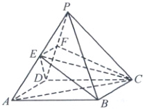 (2)因为底面$ABCD$为平行四边形,所以$AB// CD$,又$AB\subset$平面$ABEF$,$CD⊄$平面$ABEF$,所以$CD//$平面$ABEF$。又平面$ABEF\cap$平面$PDC = EF$,所以$CD// EF$,又$E$为$PC$的中点,所以$F$为$PD$的中点。