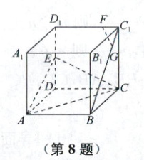 8. 如图,正方体 $ ABCD - A_1B_1C_1D_1 $ 的棱长为 4,$ E $ 为 $ DD_1 $ 的中点,$ F,G $ 分别为 $ C_1D_1,BC_1 $ 上一点,$ C_1F = 1,FG // $ 平面 $ ACE $,则下列结论正确的是 (