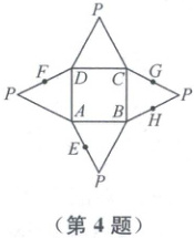 4. 如图是四棱锥的平面展开图,其中四边形ABCD为正方形,E,F,G,H分别为PA,PD,PC,PB的中点,在此几何体中,结论错误的是 (