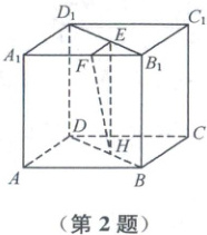 2. 如图,在正方体ABCD - A₁B₁C₁D₁中,E在B₁D₁上,F在A₁B₁上,且$\frac{B₁E}{B₁F} = \frac{B₁D₁}{B₁A₁}$,过点E作EH//B₁B交BD于点H,则平面EFH与平面BB₁C₁C的位置关系是 (
