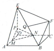 13. 如图,在几何体ABCDEF中,已知四边形ABCD是正方形,ED//FC,AD = ED = 2FC = 4,M,N,Q分别为AD,CD,EB的中点,P为ED上靠近点D的四等分点.求证: