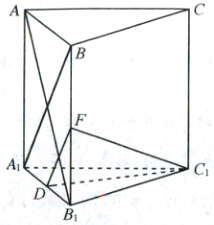 4. D 由题意知$C_1D\perp A_1B_1$,$C_1D\perp A_1A$,$A_1B_1\cap A_1A = A_1$,所以$C_1D\perp$平面$AA_1B_1B$,故$C_1D\perp AB_1$,如图,作$DF\perp AB_1$交$BB_1$于点$F$,连接$C_1F$,$A_1B$,此时$AB_1\perp$平面$C_1DF$.在矩形$A_1B_1BA$中,$A_1B_1 = A_1A$,所以四边形$A_1B_1BA$是正方形,所以$A_1B\perp AB_1$,所以$DF// A_1B$,又$D$为$A_1B_1$的中点,所以$F$为$BB_1$的中点,即$BB_1 = 2B_1F$,所以$B_1F = BF$,所以$\lambda = 1$.