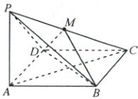 11. $DM\perp PC$(或$BM\perp PC$) 如图,连接$BD$,$AC$.因为四边形$ABCD$各边都相等,即四边形$ABCD$为菱形,所以$BD\perp AC$.又$PA\perp$平面$ABCD$,则$BD\perp PA$,且$PA\cap AC = A$,所以$BD\perp$平面$PAC$,则$BD\perp PC$.所以当$DM\perp PC$或$BM\perp PC$时,$PC\perp$平面$BDM$.