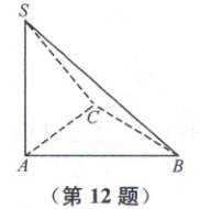 12. 如图所示,在三棱锥 $ S - ABC $ 中,$ SA\perp $ 平面 $ ABC $,且$\triangle ABC $ 是边长为 1 的正三角形,若 $ SA = BC $,则点 $ A $ 到平面 $ SBC $ 的距离为