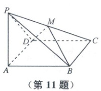 11. 如图,在四棱锥 $ P - ABCD $ 中,$ PA\perp $ 底面 $ ABCD $,且底面各边都相等,$ M $ 是 $ PC $ 上的一动点,当点 $ M $ 满足