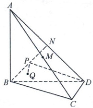 9. 如图,在四面体$ ABCD $中,$ AB \perp $平面$ BCD $,$ M $,$ N $分别是$ AC $,$ AD $的中点,$ P $是线段$ BN $上的动点(不与点$ B $,$ N $重合),$ Q $是侧面$ ABC $内的动点,$ AB = BD = 2 $,$ BC = CD = \sqrt{2} $,下列说法正确的是 (