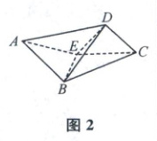 13. 如图1,在梯形$ ABCD $中,$ AD // BC $,$ AD \perp CD $,线段$ AD $上有一点$ E $,满足$ CD = DE = 1 $,$ AE = BC = 2 $.现将$ \triangle ABE $,$ \triangle CDE $分别沿$ BE $,$ CE $折起,使$ AD = \sqrt{5} $,$ BD = \sqrt{3} $,得到如图2所示的几何体,求证:$ AB // CD $.