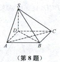 8. 如图,四棱锥$S - ABCD$的底面为正方形,$SD⊥$底面$ABCD$,则下列结论正确的是 (