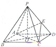13. 如图,在四棱锥$P - ABCD$中,底面$ABCD$是菱形,$∠ABC = 60^{\circ }$,$AB = 2$,$AC\cap BD = O$,$PO⊥$底面$ABCD$,$PO = 2$,点$E$在棱$PD$上,且$CE⊥PD$.
