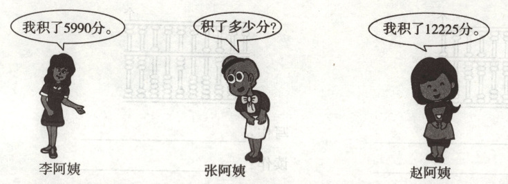 三位阿姨参加商场购物积分活动。张阿姨比李阿姨的积分多一些,比赵阿姨的积分少得多。张阿姨可能积多少分?(请你根据信息进行选择,并在正确的答案下面画“√”。)