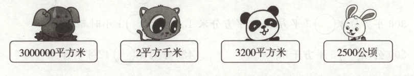 2. 给小动物们排排队。(把下面的面积按照从小到大的顺序排列)(8分)