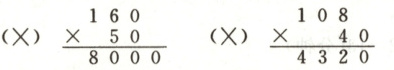 $\begin{array}{r}108\\×40\\\hline432\end{array}$ 改正: