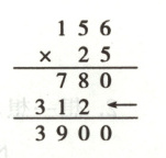 5. 一张桌子156元,学校要购买25张桌子,一共要花多少元?竖式中箭头所指的结果表示()。