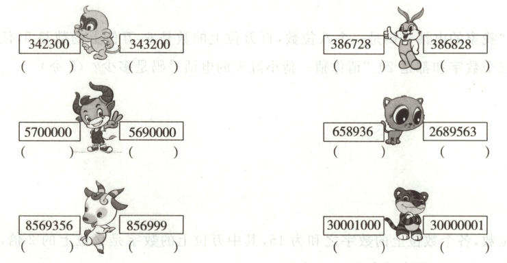 一、比一比,下面的小动物哪只手里拿着的数大?在它下面打“√”。(12分)