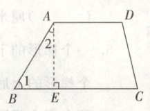 4. 如图,在梯形ABCD中,$∠1 = 60^{\circ}$,AE是梯形的高,求$∠BAD$的度数。(6分)