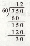 2. $750÷60 = 12...3$