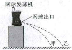 7. 物理生活 网球发球 网球发球机固定在平台上,从距水平地面高$h$处沿水平方向发射出质量均为$m$的甲、乙两球,两球均落在水平地面上,其运动轨迹如图所示. 不计空气阻力,重力加速度为$g$,网球可视为质点. 下列说法正确的是(